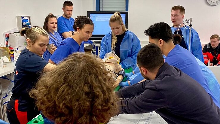 Erstmals haben die Akademie für Gesundheitsfachberufe des St. Vincenz Gesundheits-Verbundes und das DRK Limburg angehende Notfallsanitäter:innen mit Pflegefachkräften des Fachweiterbildungskurses „Notfallpflege“ zu einem gemeinsamen Schockraumtraining zusammengeführt.
