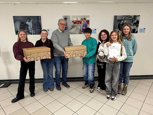 Für viele Kinder bedeutet ein Krankenhausaufenthalt an Weihnachten Stress und Einsamkeit. Sechs Siebtklässler der Erlenbachschule Elz wollten das nicht hinnehmen und packten 250 Weihnachtstüten für junge Patientinnen und Patienten im Krankenhaus Limburg, einem Haus des St. Vincenz Gesundheits-Verbundes. Zusätzlich sammelten sie 540 Euro für das Aquarium der Kinderstation.