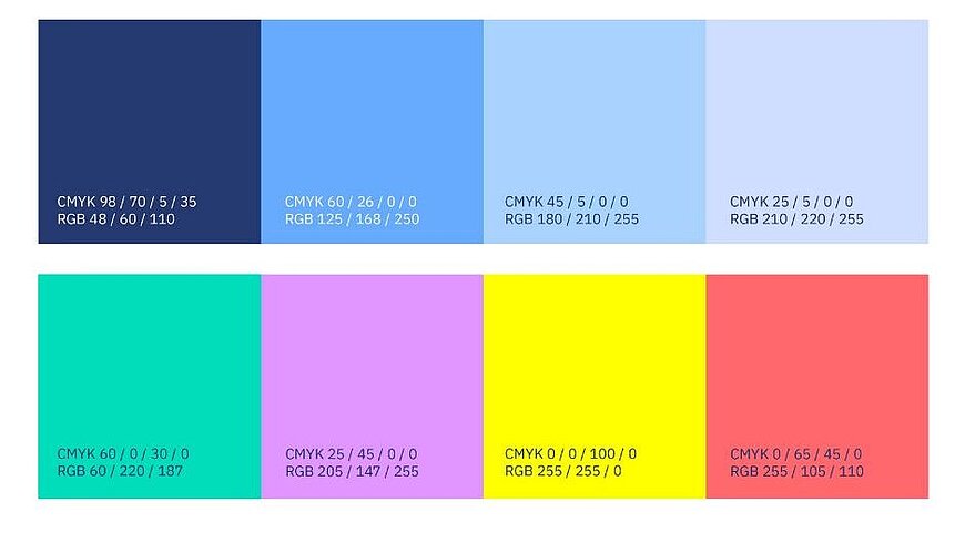 Nicht nur unser Logo hat sich verändert, auch unser gesamtes Erscheinungsbild wird lebendiger. Blau bleibt unsere Hauptfarbe: Sie steht für Vertrauen, Klarheit und medizinische Kompetenz. Dazu kommen vier neue Akzentfarben, die für Aufmerksamkeit sorgen und unsere Haltung sichtbar machen.