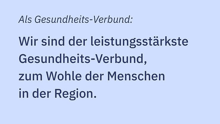 Wir sind mehr als Standorte, Berufsgruppen oder Fachdisziplinen. Wir sind ein Verbund aus Menschen, die täglich Verantwortung übernehmen – für andere, für die Region, für ein gutes Miteinander. Damit das sichtbar wird, haben wir uns gefragt: Was macht uns aus? Was verbindet uns? Und wie wollen wir gemeinsam nach innen und außen auftreten?