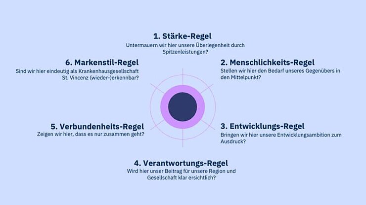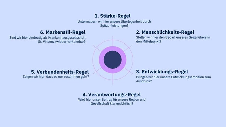 Unsere Markenregeln helfen dabei, dass jede Mitarbeiterin und jeder Mitarbeiter die geschärfte Identität des St. Vincenz Gesundheits-Verbunds im Alltag mitträgt – ganz einfach und konkret.